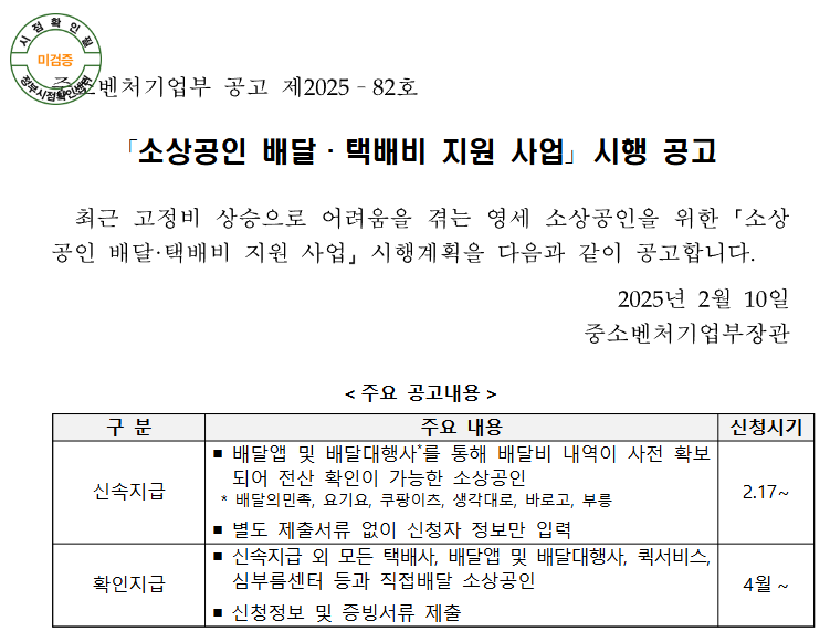 2025년 소상공인 배달·택배비 지원사업이 2월 17일부터 시작되었습니다. 이 사업은 연 매출 1억 400만 원 미만의 소상공인을 대상으로, 배달·택배비 부담 완화를 통한 소상공인 경영 안정 지원을 위해 최대 30만 원까지 지원하는 제도입니다.